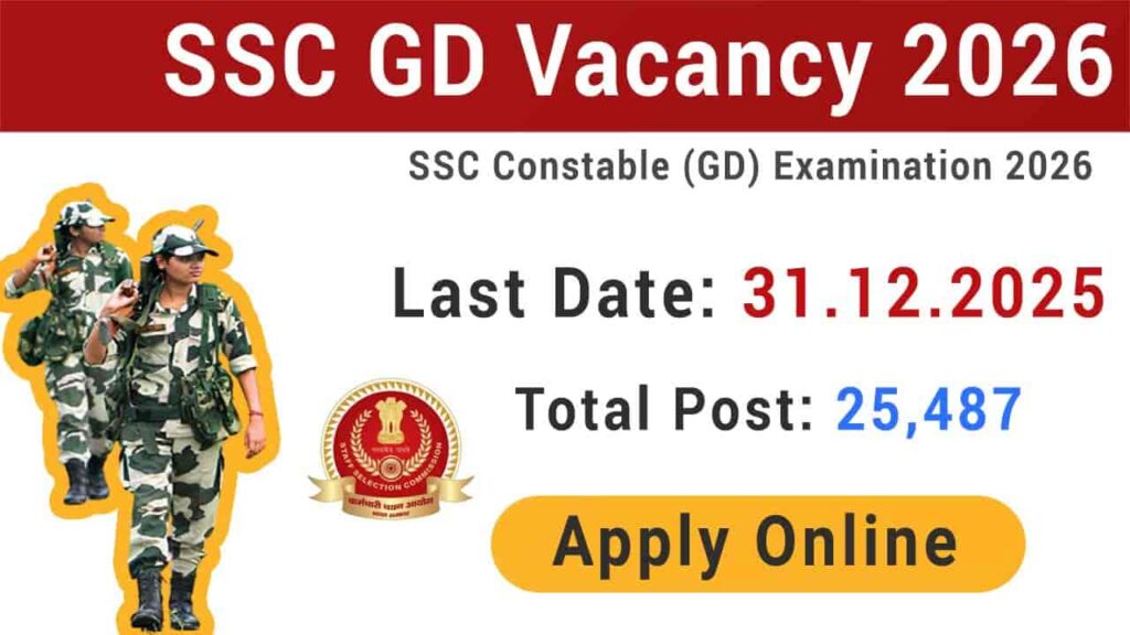 The Staff Selection Commission (SSC) has officially released the notification for SSC GD Constable Recruitment 2026 on its official website. This large-scale recruitment drive aims to fill 25,487 Constable (GD) vacancies across various Central Armed Police Forces (CAPFs) and other forces, including BSF, CISF, ITBP, CRPF, NCB, SSF, and Assam Rifles.