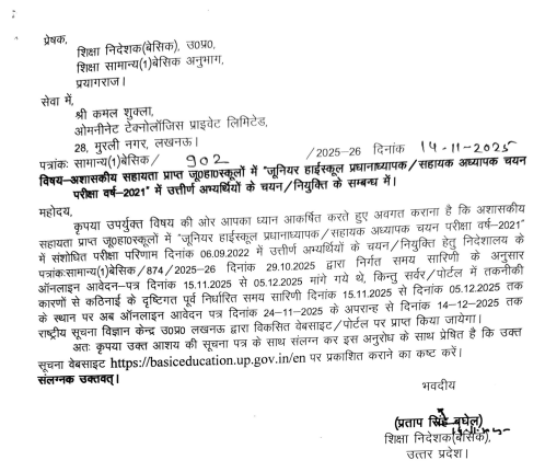 This update is particularly relevant for those applying for the 2021 Principal and Assistant Teacher Selection Examination for Non-Government Aided Junior High Schools in Uttar Pradesh. The previous application schedule has been changed due to technical difficulties, and candidates are advised to follow the new timetable carefully to avoid missing the opportunity.